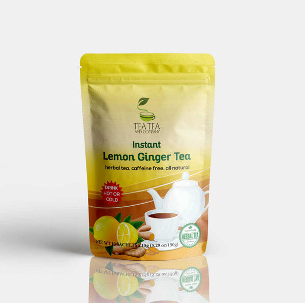 Lemon Ginger Tea 10 Pack: ten single serve, on the go, eco-friendly, quick steep, just add to hot or cold water. Caffeine Free, all natural, instant lemon ginger tea that can be enjoyed hot or cold. Fill your cup with 6-8 ounces of cold filtered or hot water and add one packet of instant lemon ginger tea.